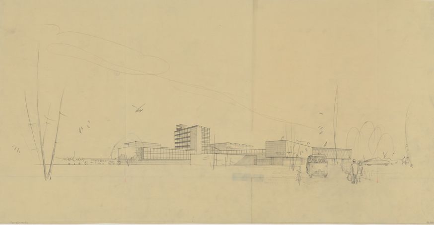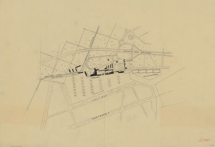 Am Architektenwettbewerb für den Flughafen Frankfurt Main beteiligte sich ME mit dem Entwurf für einen langgestreckten Baukomplex mit diversen Gebäuden für Terminals, Fracht- und Werkstattbereiche. Die Formensprache war modern und funktional, wobei die Grundformen eine zu starre Ausrichtung vermieden. Schaubilder – z. T. aus der Vogelperspektive – konzentrierten sich auf den Abfertigungsbereich. Im Wettbewerb erzielten Alois Giefer und Hermann Mäckler den ersten Preis.